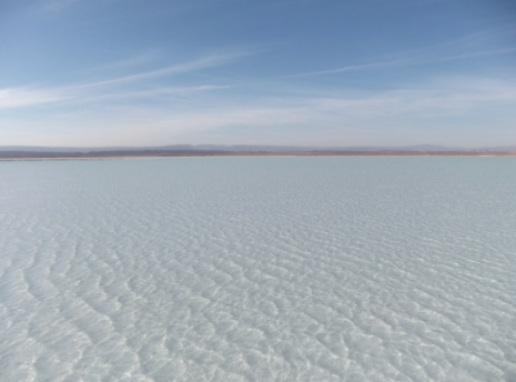 El paisaje es uno de los más atractivos del desierto de atacama, donde se mezcla el azul del cielo, el blanco de la sal, el celeste del agua y el rosado de los flamencos que llegan para alimentarse. Lo mejor es caminar siempre con zapatos ya que las sales presentan puntas filosas que pueden cortar los pies.